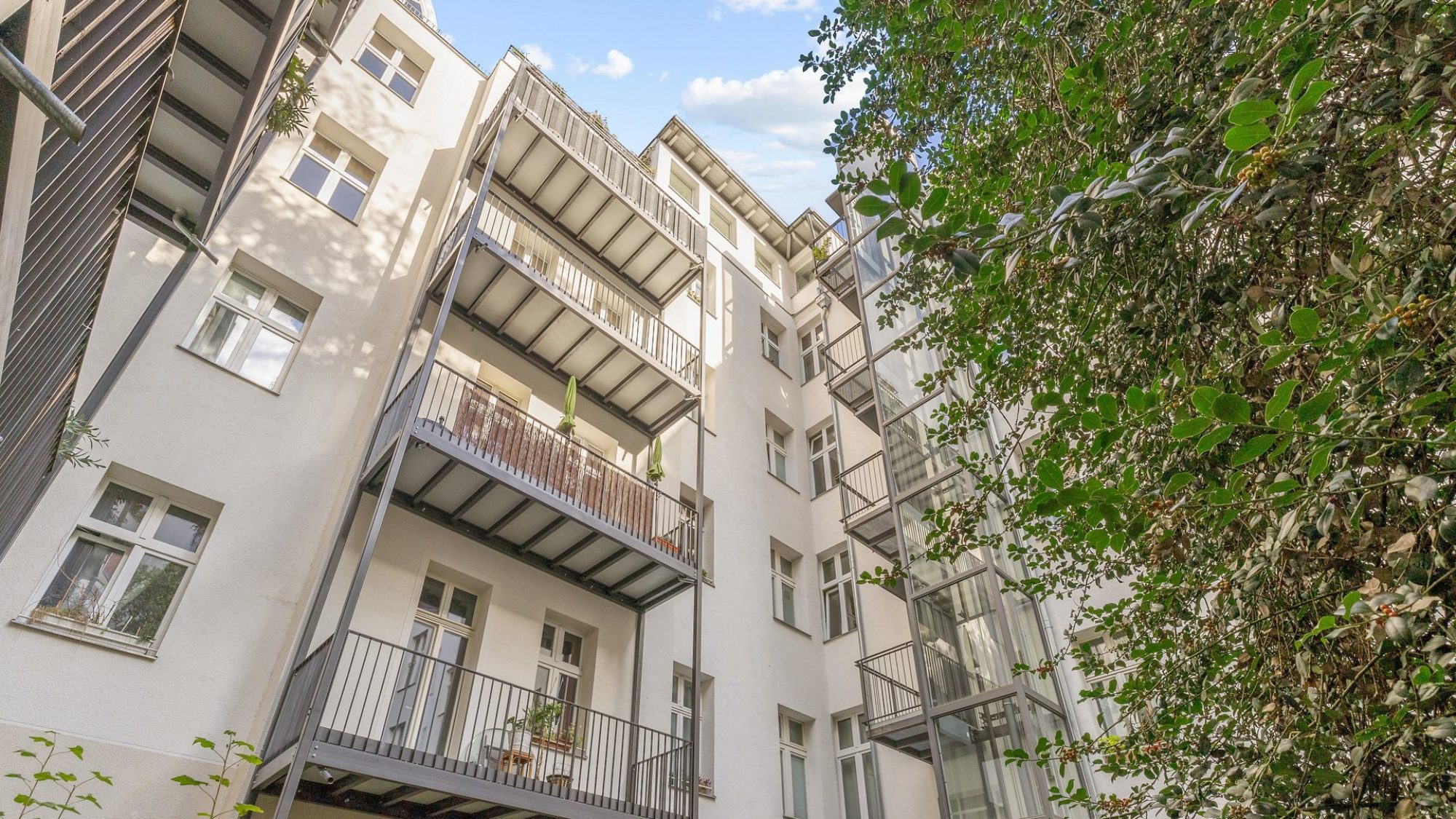 From the first floor upwards, the front building features balconies, bay windows, and a modern elevator. The well-designed floor plans offer a variety of living options – from classic living to individual concepts.