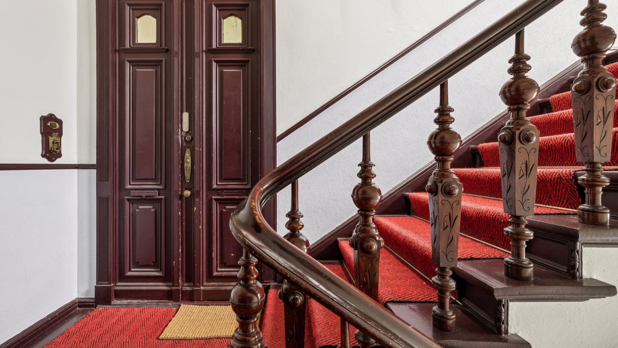 Double-leaf and panel doors with historic fittings underscore the architectural style of bygone eras.